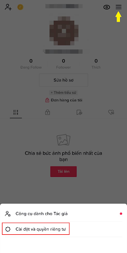 Tại giao diện trang cá nhân, bạn chọn biểu tượng Menu [≡] ở góc trên cùng bên phải màn hình, sau đó chọn mục “Cài đặt và quyền riêng tư”.